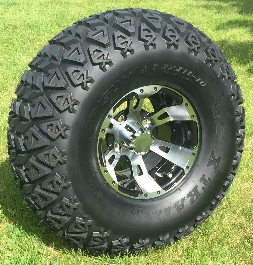 Perfectly safe for your lawn, great grip on trails and extended wear when used in the street. The RUCKUS 10″ wheel and 22″x10-10″ tire combo is an all around performer! This combo includes: