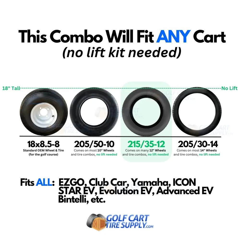 | Fits (no lift kit needed): | ALL Golf Carts |