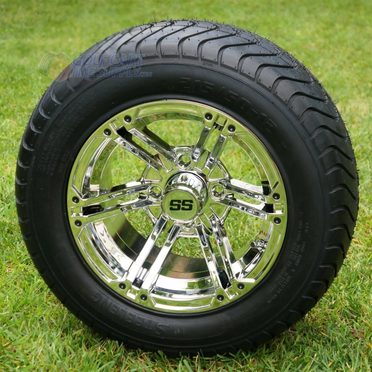 12″ TERMINATOR Chrome Wheels and 215/50-12″ ComfortRide DOT Tires Combo – Set of 4