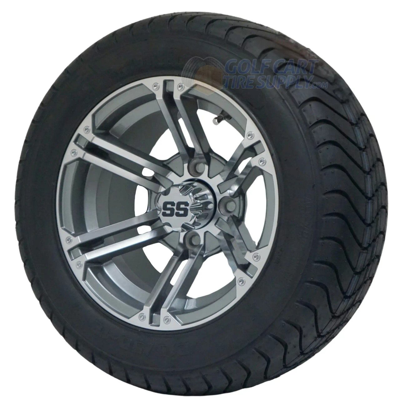 Our TERMINATOR GUNMETAL combo looks amazing and is the wheel and tire combo you have been looking for. We take our brand new Gunmetal TERMINATOR golf cart wheels and mount them on high performing 215/50-12 ComfortRide tires which are street legal (DOT) and turf safe. These wheels are very high quality and are only done true justice when seen in person.