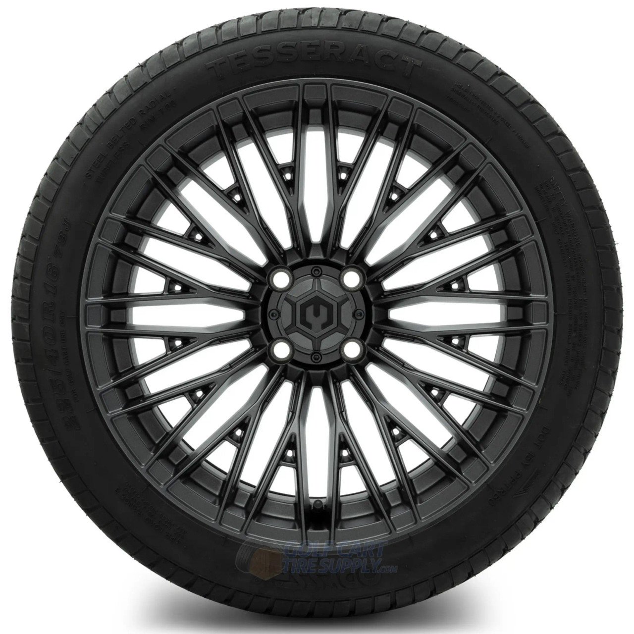 We wrap the sporty new MODZ 16″ REAPER golf cart wheels in high-performing all purpose 225/40-16″ Odyssey Radial Street DOT golf cart tires which are a Steel Belted Radial construction and Turf Safe. These street tires are perfect for almost any surface, including street, turf, gravel, loose dirt and more; giving your golf cart the all-purpose performance it deserves.