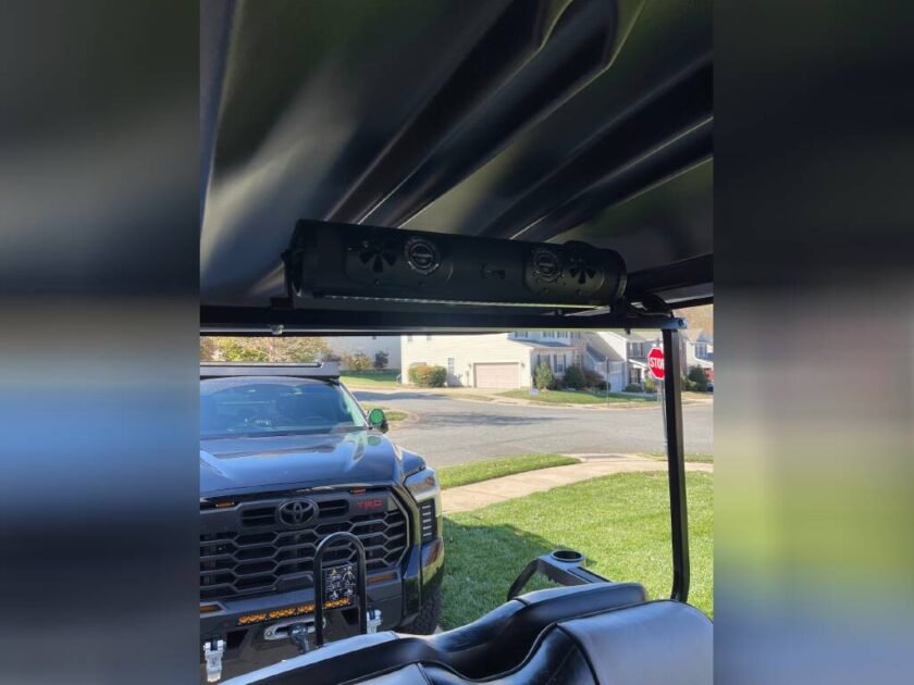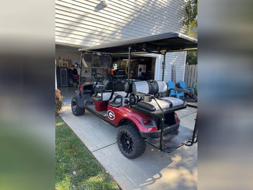 72v with only 22.5 hrs. rabbit & turtle modes, tinted windshield, Bazooka G2 blu tooth speaker with lights, Under glow lighting, LED head lights, lifted with 14×22 wheels/tires, full overhead canopy, always garaged, original owner.