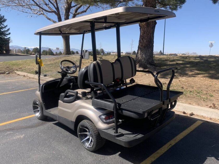 ICON Electric Vehicles NEW – i40, The ICON i40 four-seater golf cart is the epitome of perfection when it comes to residential and commercial needs. Whether you re taking your friends to lunch or transporting potential clients , this golf cart is stylish and extremely comfortable. Plus, it s loaded with premium features like 10? aluminum wheels, 4-wheel disc brakes, powder-coated steel chassis, lights, turn signals, high-speed rear ends, durable front and rear bumpers, painted rooftops, horns, digital gauges, and more!