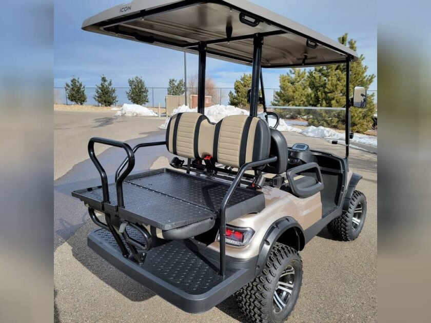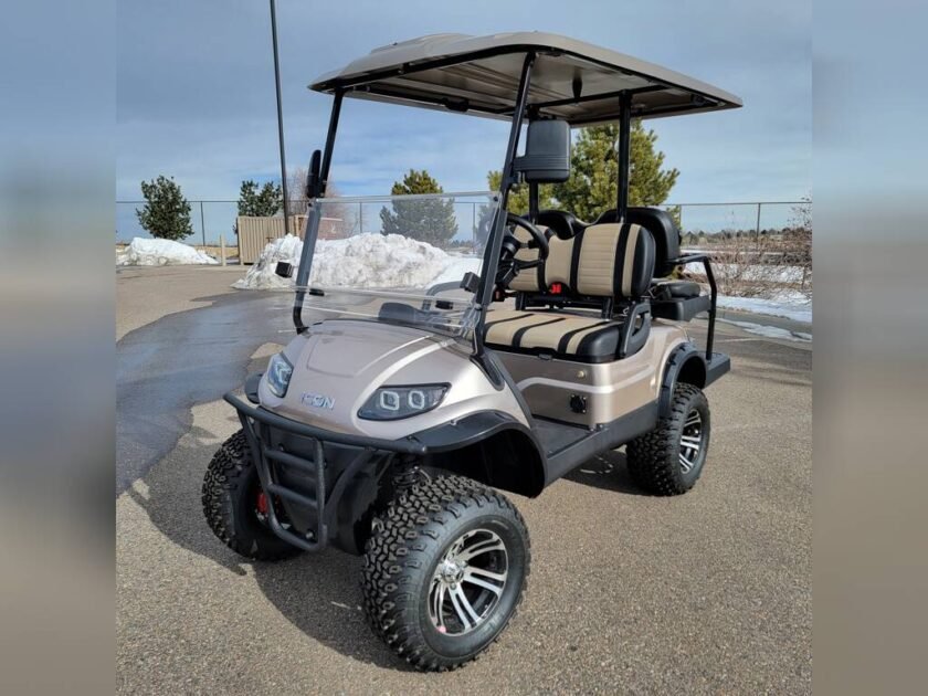 ICON Electric Vehicles NEW – i40L, This lifted ICON i40L four-seater golf cart stands out with style, durability and power, making it an all around winner for commercial & residential use.The ICON EV i40L is ideal for individuals and companies looking to transport friends, family, and clients in comfort & class. This lifted four-seater model is loaded with premium features like 12? aluminum wheels, 4-wheel disc brakes, powder-coated steel chassis, lights, turn signals, high-speed rear ends, heavy-duty forward brush guard, durable front and rear bumpers, fender flairs, painted rooftops, horns, digital gauges, and more.